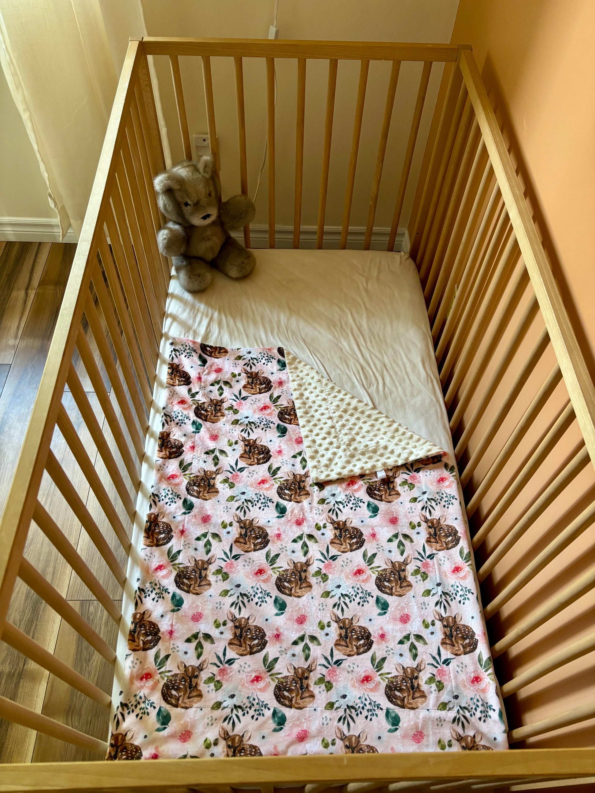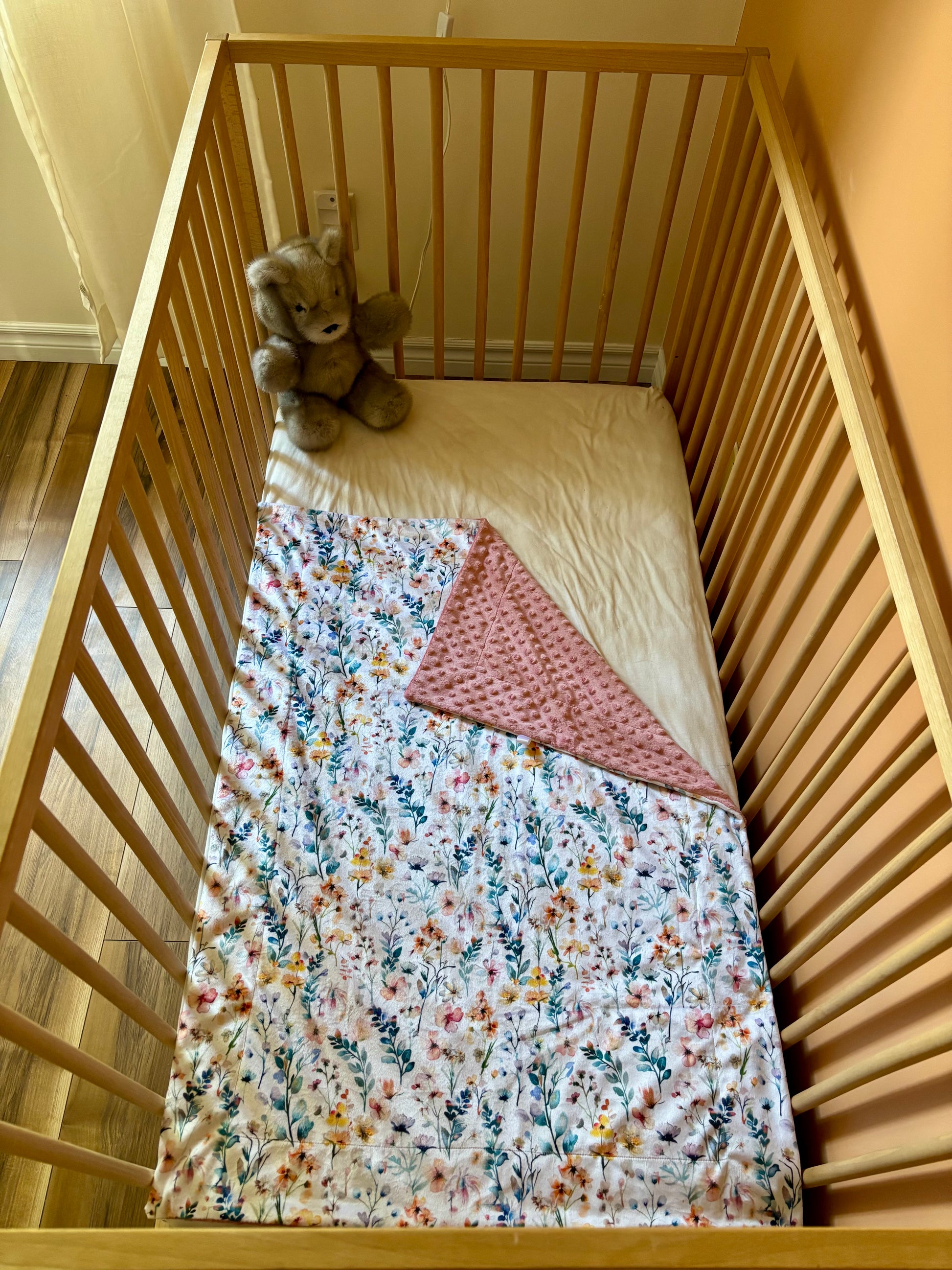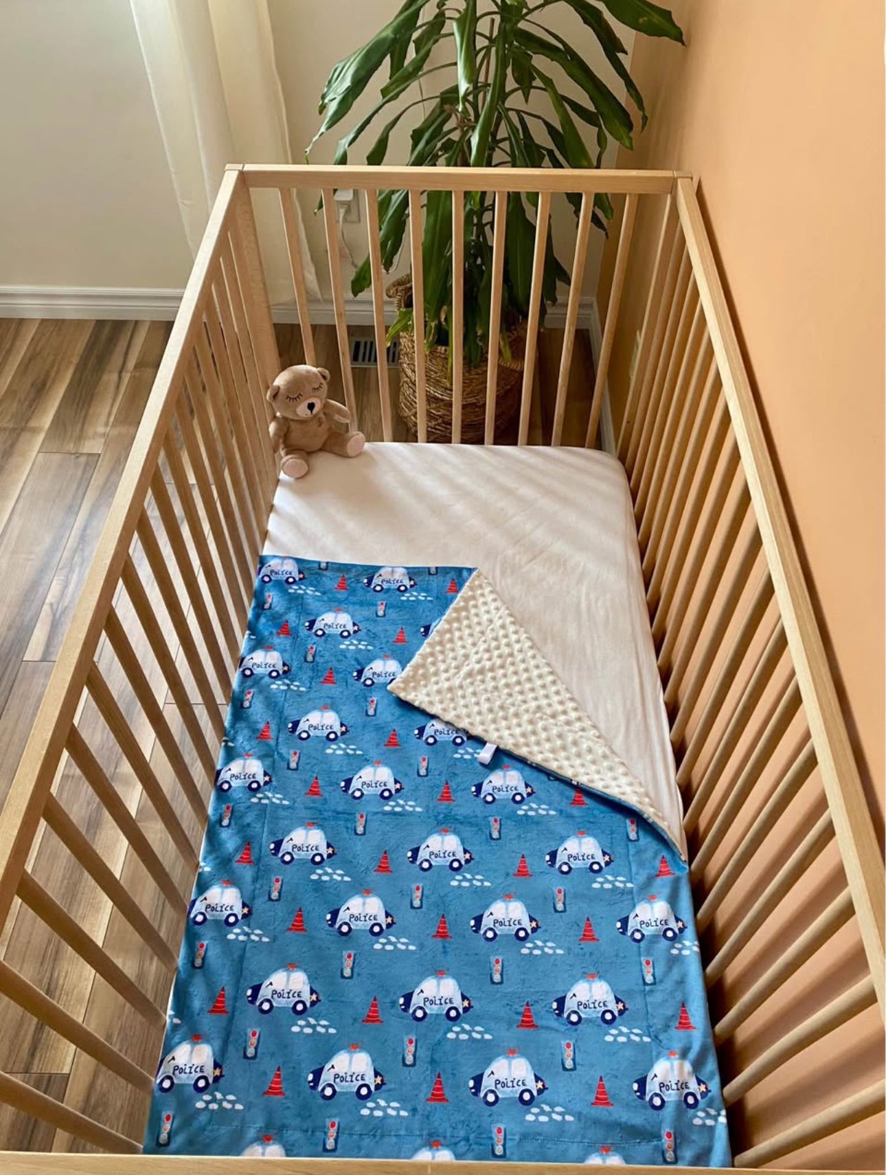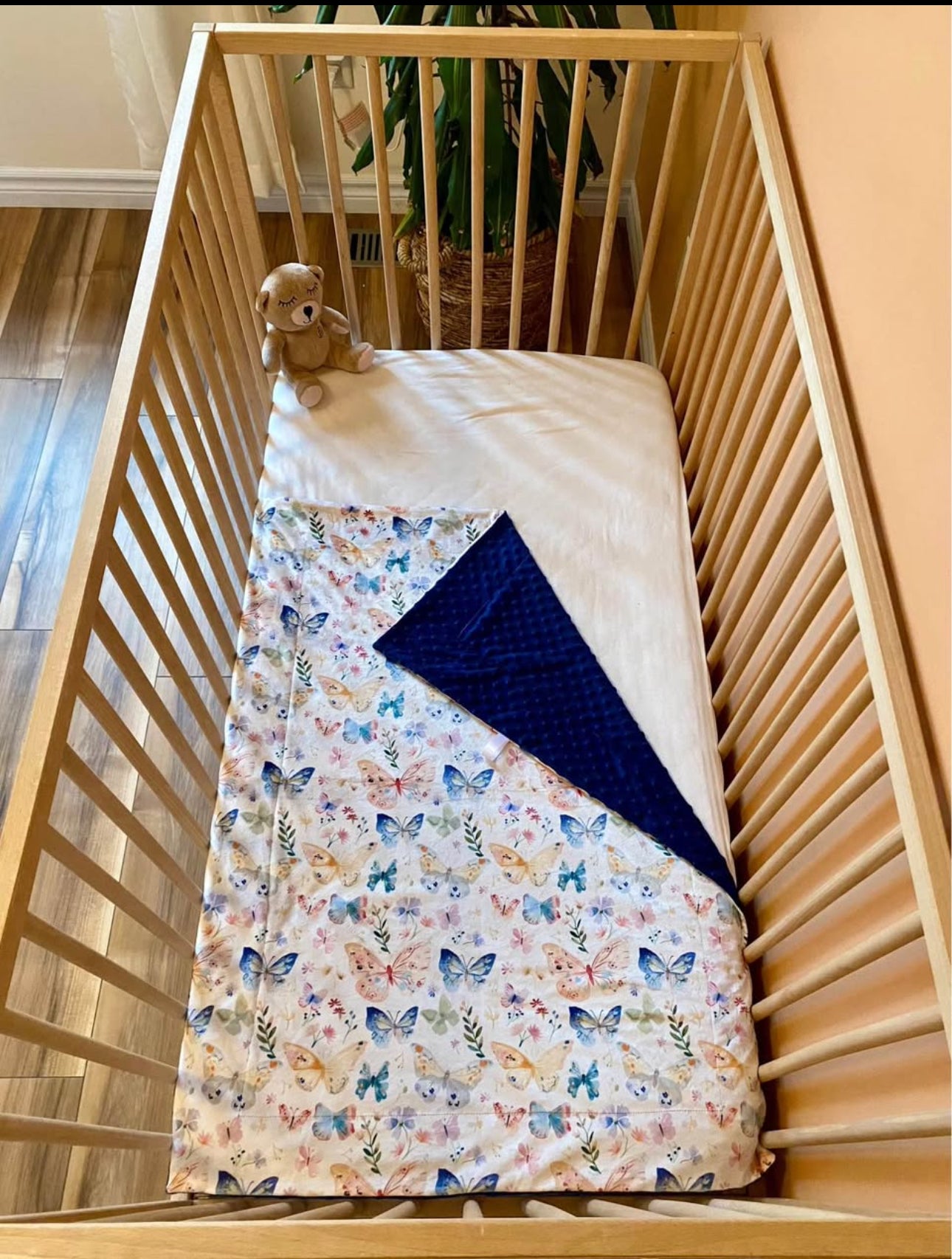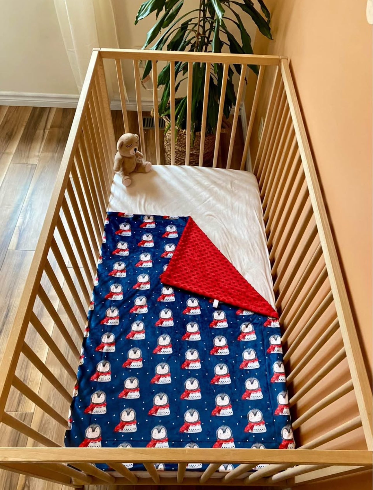 La couverture minky qui garde bébé au chaud, tout en douceur! Elle a une étiquette assortie parfaite pour un collant d'identification pour la garderie.