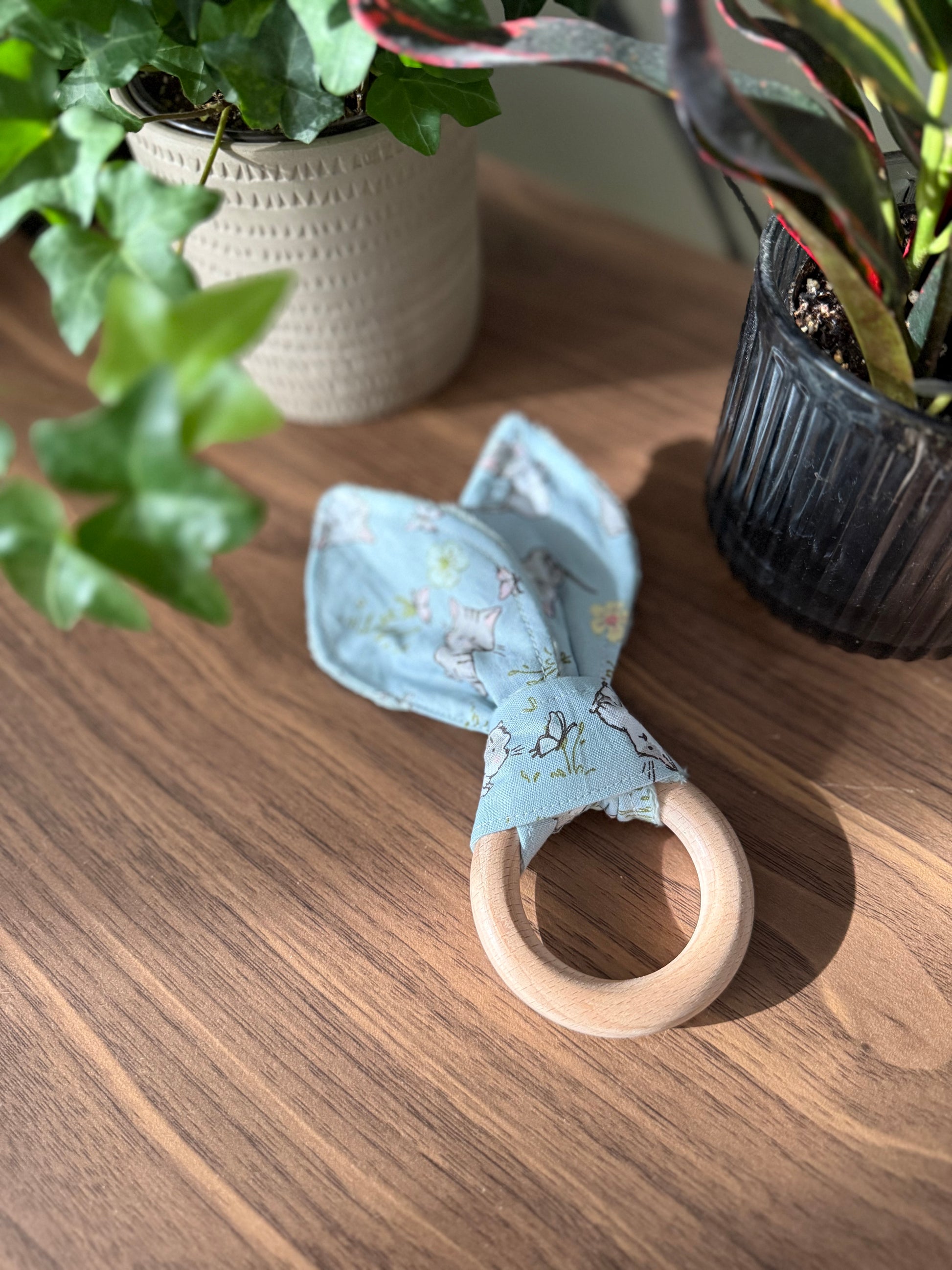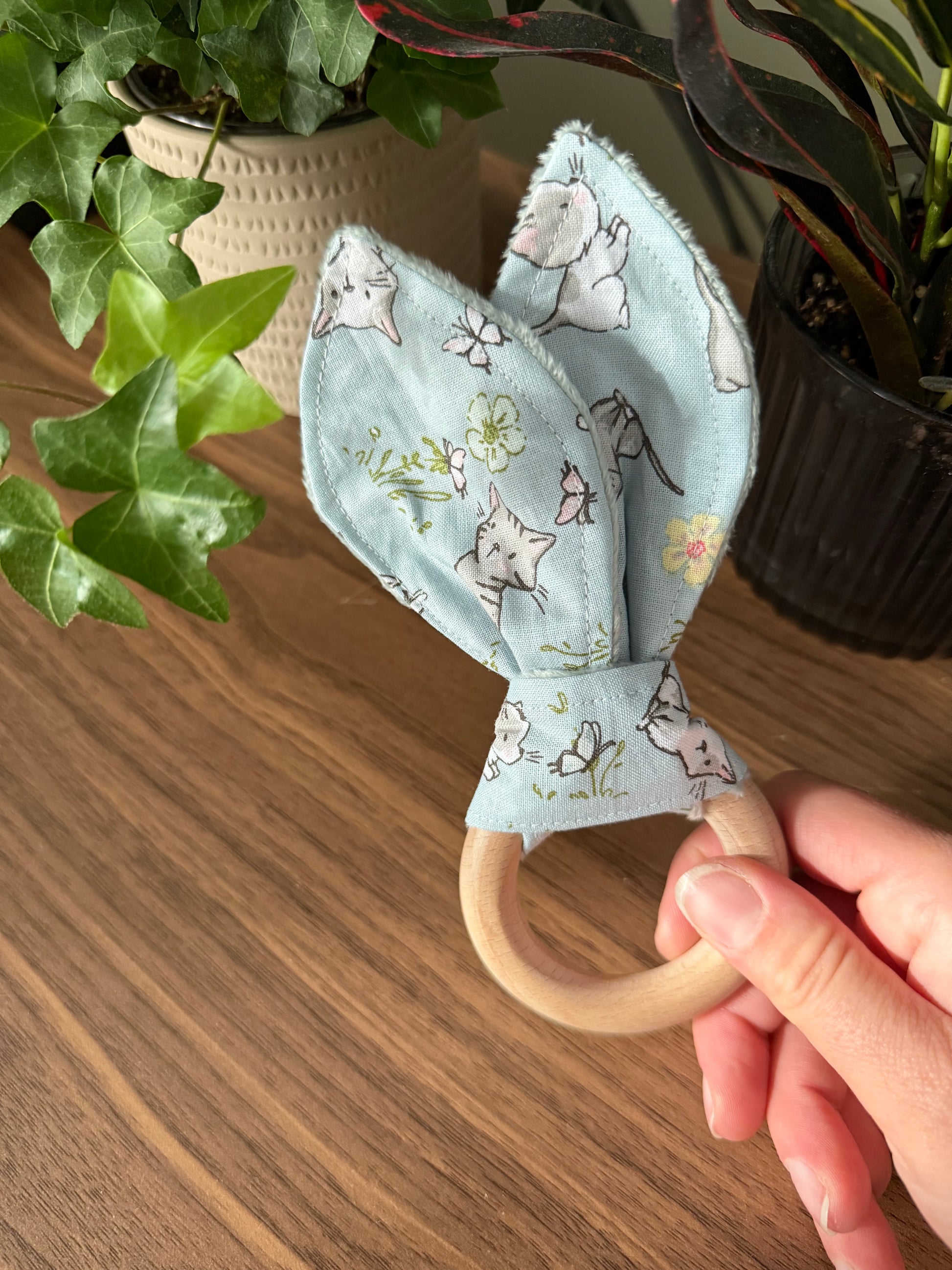 Nos oreilles craquantes sont de jolis jouets sensoriels pour bébé, en forme d’oreilles de lapin et attachées à un anneau en bois de hêtre idéal pour la dentition. Le tissu craquant et doux peut être retiré pour être lavé facilement, offrant un jouet pratique, hygiénique et sécuritaire pour bébé.